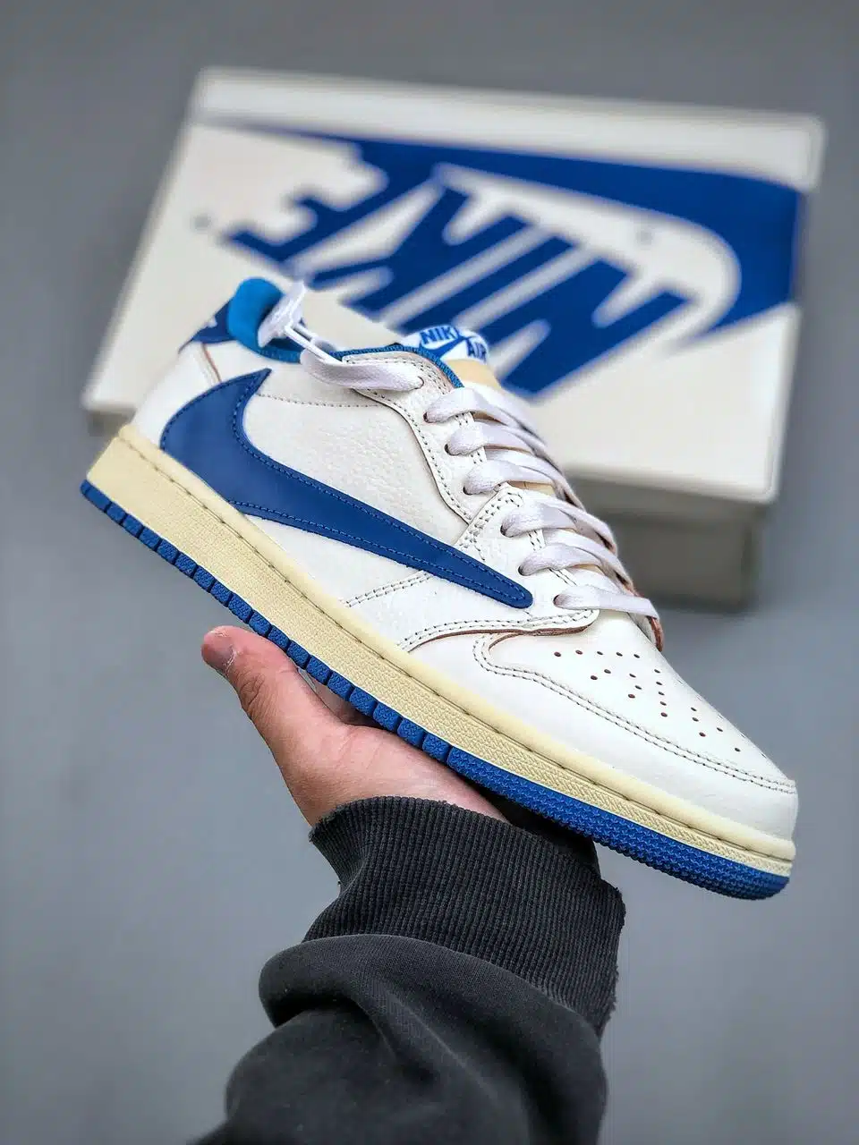 Réplica JORDAN 1 RETRO LOW OG SP FRAGMENT X TRAVIS SCOTT SAIL ‘MILITARY BLUE’